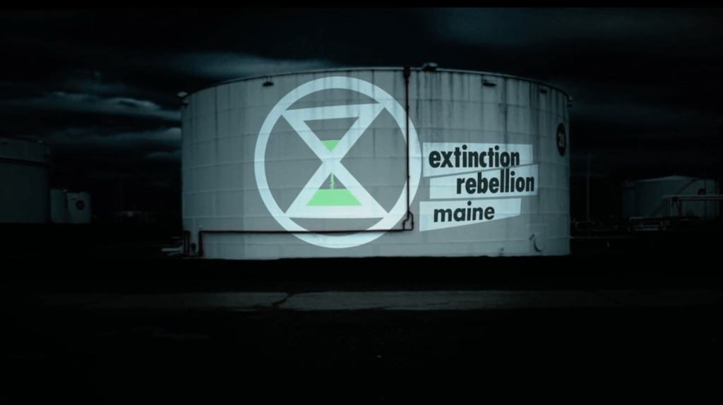 LumenARRT! joins the Extinction Rebellion call for action on 4/15 with a virtual projection on a South Portland oil tank! Stop pissing on our world! See the whole video here!