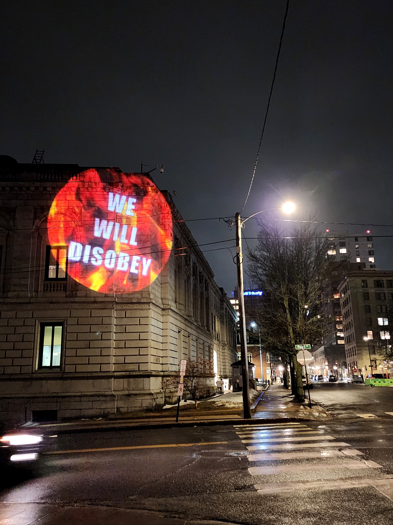 LumenARRT! was on the street in Portland with video and light projections. We stand against racism and continue to amplify the voices of #Black Lives Matter and, as we say in our video on the capitol, “Racism is a virus…we support all those fighting against viruses everywhere.” We won’t let Trump’s photo-op in Maine divide our community!